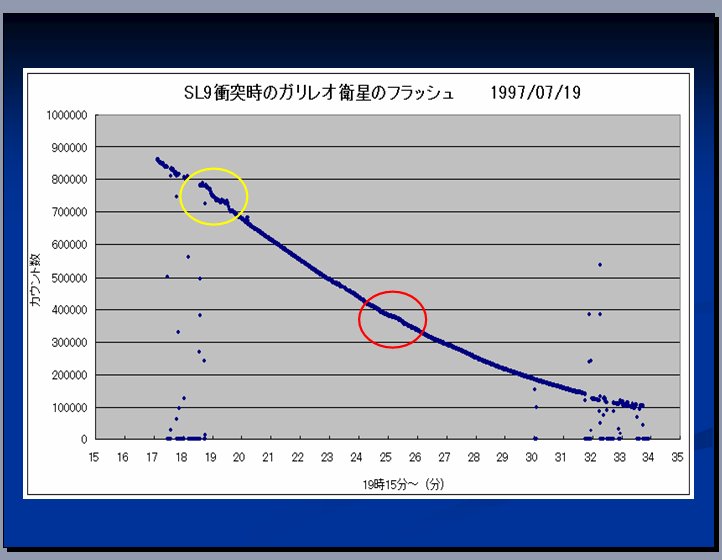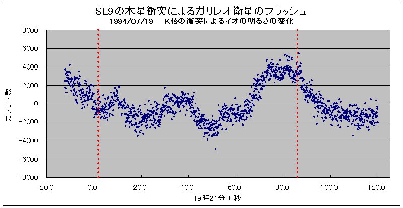 問題として残るのは捉えた光度変化は何であったのか?ということです。30年前の記憶をたどってみると、ちょうど木星へのSL9の衝突があったときに、